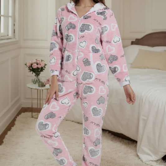 Women's Plush Warm Hooded Pajama Set